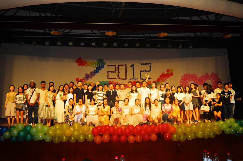 2016届毕业生晚会在大学生活动中心二楼拉开帷幕。舞台背景布置成Z2012,毕业生和学业老师一起搭乘这列Z2012—2016列车,回味美好的大学四年。