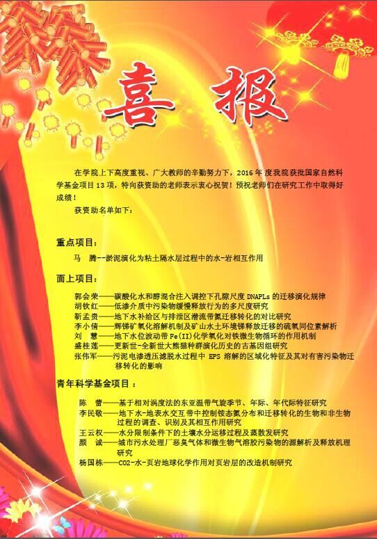 喜报——热烈祝贺十大成人直播平台排行榜 2016年国家自然科学基金创佳绩