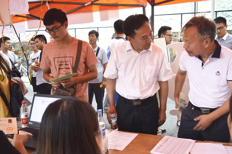5、学院党委书记李素矿和大气系主任李双林在迎新点了解情况