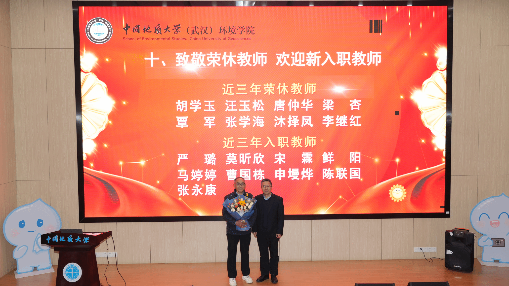 荣休教师代表张学海发言。他以习近平总书记新年贺词、学校书记校长和学院书记院长的新年献词回顾国家、学校和学院取得的辉煌成就。他表示,在学院党委领导和院工会带领下,全体教职工和退休教师聚焦发展、聚合共识、聚集动能,继续用实际行动和工作成效,奉献学院、提升自己、发光发热,助力学院发展占高地、上高原、攀高峰,为研究型学院建设和学院高质量发展贡献智慧和力量。